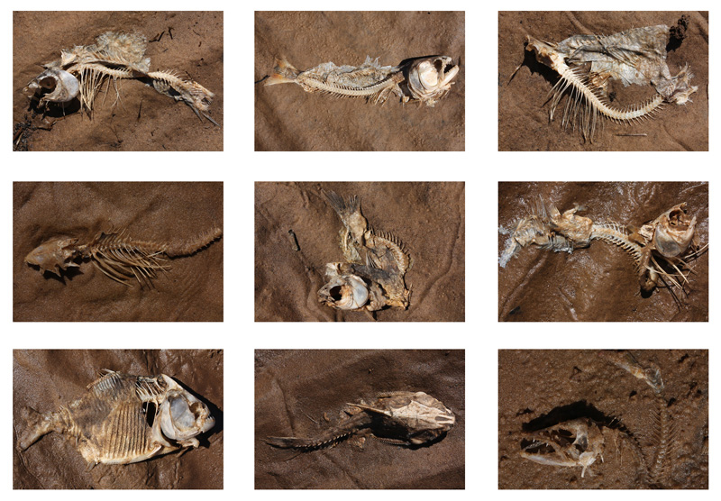 Fotografías digitales, toma directa, realizadas en la costas del Río Uruguay en el mes de octubre de 2010, durante en episodio de mortandad masiva de peces.