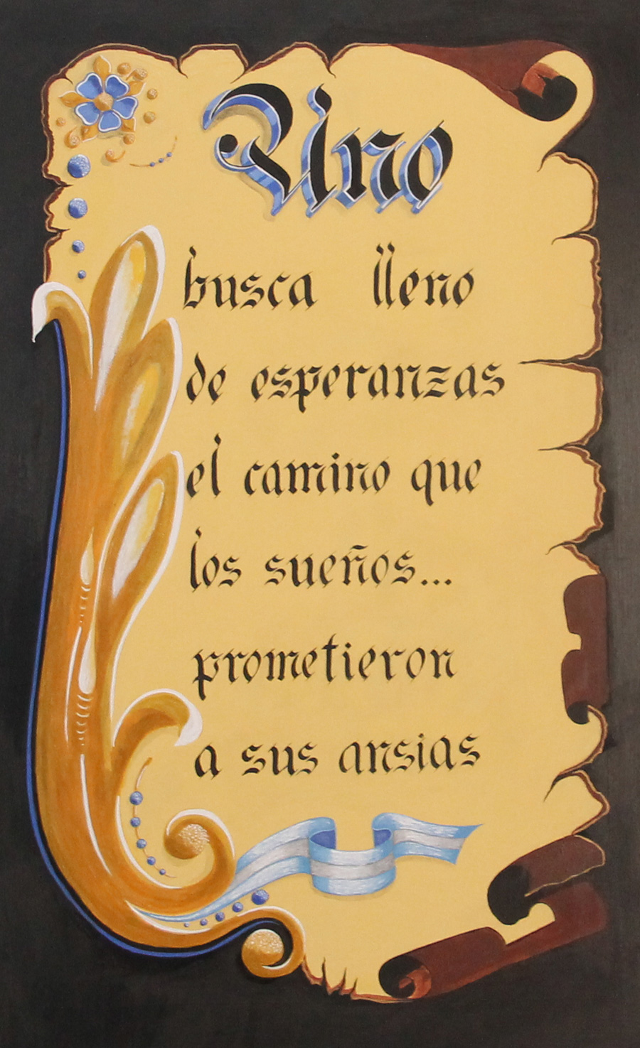 Sobre la Galería frente al Salón de Actos el 19 de agosto sube la Muestra de trabajos realizados desde la Carrera de Calígrafos, en homenaje al Día del Caligrafo.